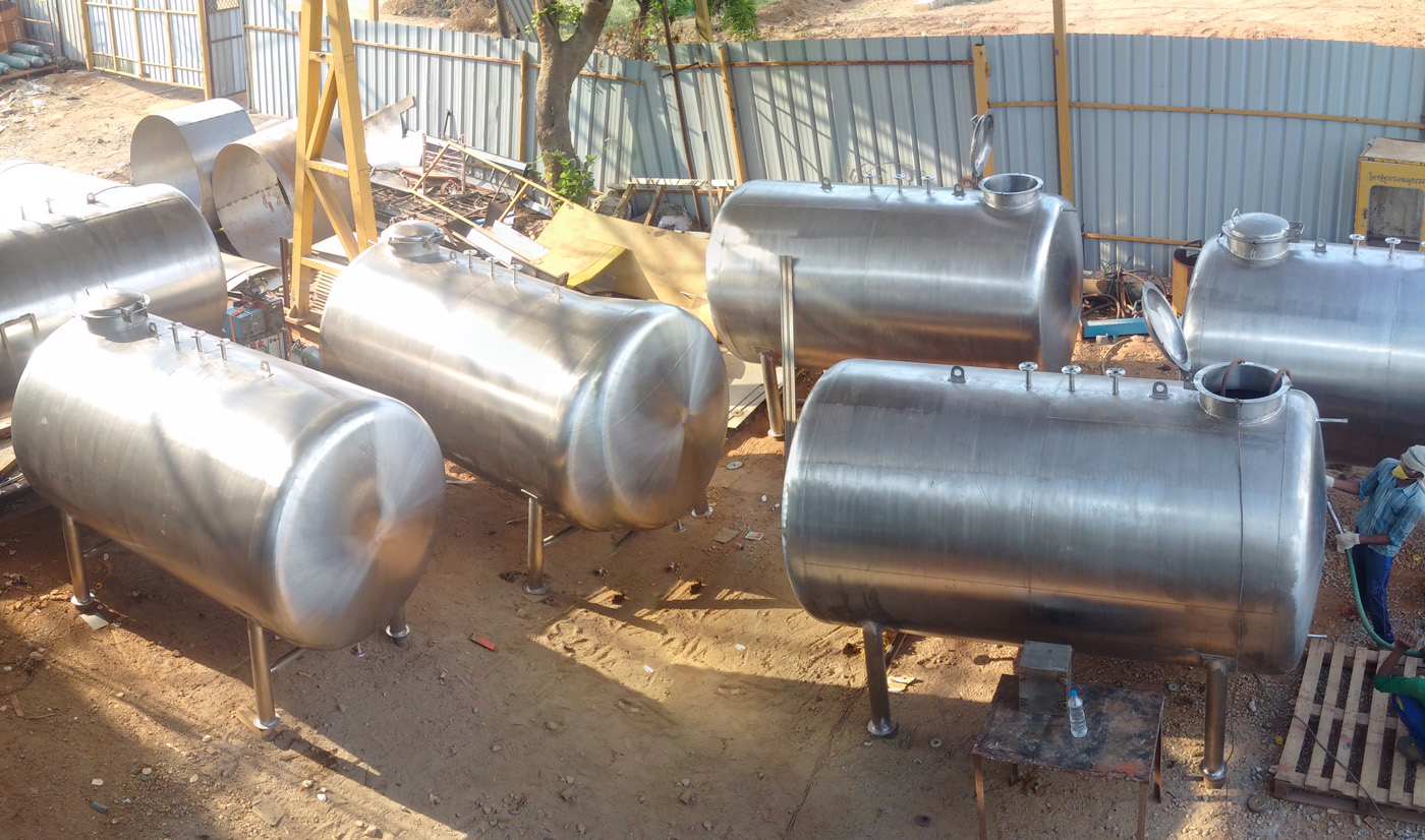 Storage vessel is a container, generally use for to storge of different type of liquids, chemicals, oils, & water, compressed gases/ liquid gases etc. We manufacture storage vessel in many shapes like vertical and horizontal cylindrical, open top and closed top, flat bottom, conical bottom, slope bottom and dish bottom, rectangular & square also.We manufacture S.S. Lorry tanks to transport the chemicals, water, milk & eatable oil etc. We are manufacturing with the standard of GMP /NON GMP from 0.50 KL to 100 KL capacity in Stainless steel grade 304, 304L, 316, 316L, Aluminium, Carbon Steel , Alloy Steel, Mild steel (IS : 2062), FRP Tanks & Rubber lined Vessels etc.